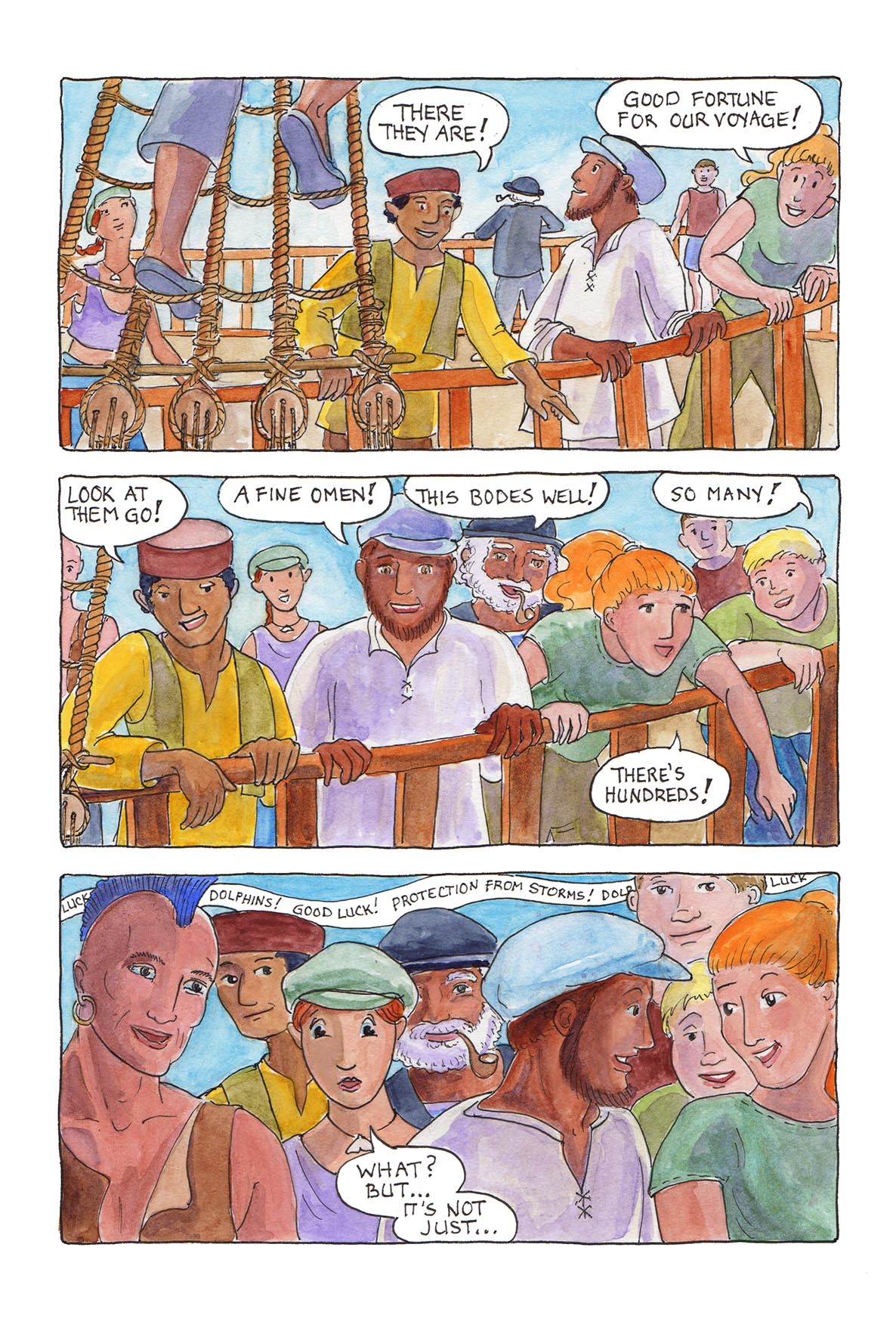 Page 36 — dolphins are a good omen, but their companion? We’ll see in Chapter 2 of Mermaid Music!