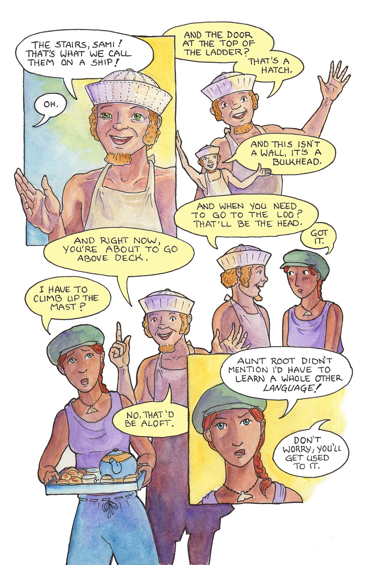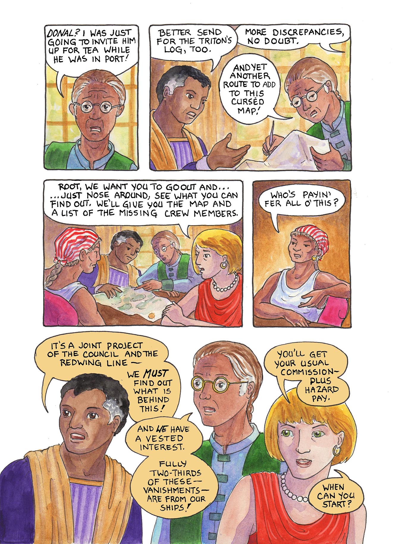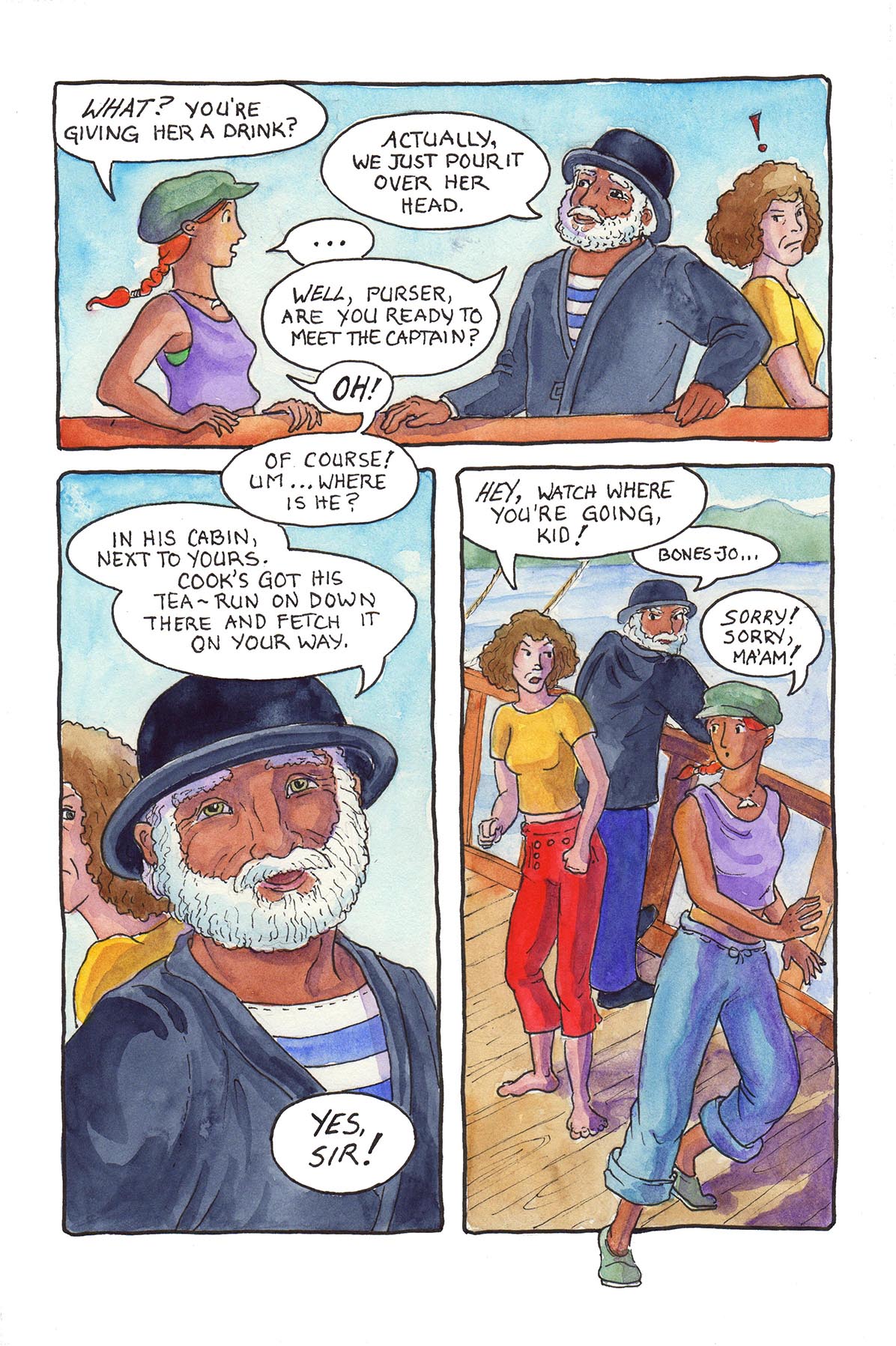 And we’re off to sea! I took some in-progress photos of this page to make a post on my main blog, Karen Gillmore Art — if you’re interested in things like what colours I use and how I apply them, pop on over there.